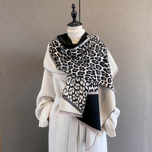 秋季新款时尚豹纹撞色围巾女加厚保暖围脖两用多功能百搭装饰披肩