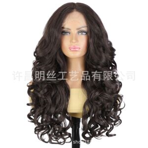 欧美热销假发蓬松yaki大面积前蕾丝长卷发女士假发外贸化纤头套