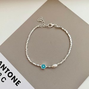 简约小众淡水珍珠花朵手链女碎银子满天星森系甜美气质自然风手饰