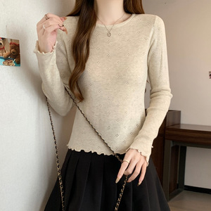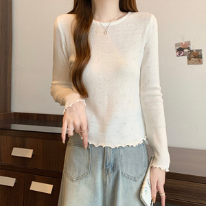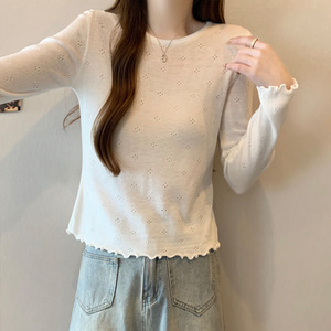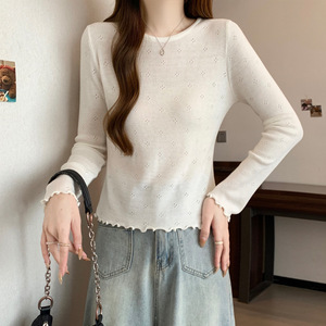 白色简约镂空设计感针织衫女2025早秋边修身百搭圆领绝美上衣