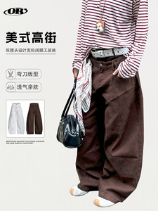 OREETA丨美式双腰头弯刀工装裤男女可穿宽松廓形vintage拖地长裤