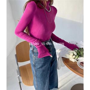 2025秋季韩版糖果色高领内搭打底衫女高弹力修身显瘦薄款洋气上衣
