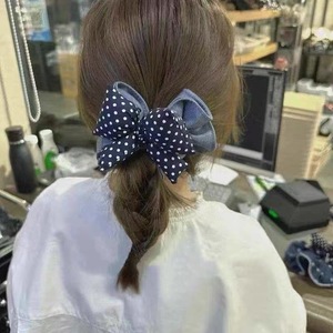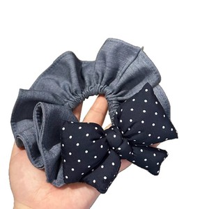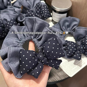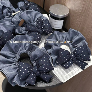 高级小众蓝色波点蝴蝶结木耳边大肠发圈发量多头绳韩国丸子头发绳