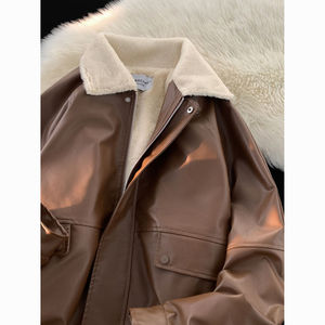 翻领皮衣棉服外套女冬季加绒加厚棉衣美式高街vibe飞行员夹克棉袄