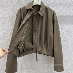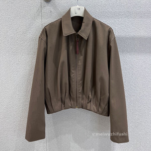 纯色褶皱设计翻领夹克外套 复古简约风宽松百搭长袖开衫 ZW63320