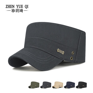 春秋季新款弯檐SPORTS金属标平顶帽男士户外防晒遮阳铜眼鸭舌帽子