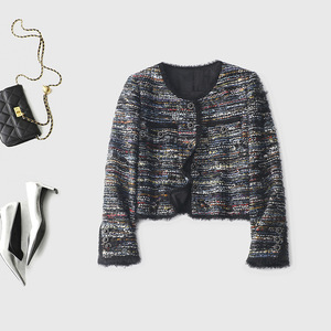 梦幻小香风百搭款 短外套女法式轻奢高级感上衣七彩纱线圆领短款
