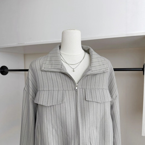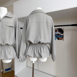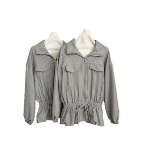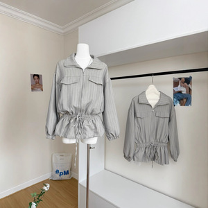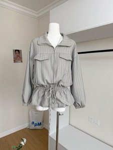 休闲气质慵懒翻领条纹收腰抽绳外套拉链夹克早秋2025秋季新款
