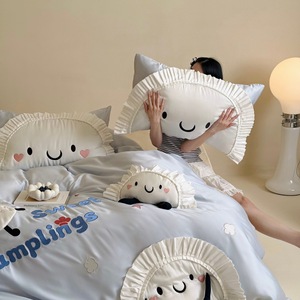 【香龄优品】可爱卡通60s天丝小饺子刺绣四件套床单被套床上用品