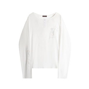 美式复古长袖t恤女早秋新款蝴蝶结蕾丝镂空防晒罩衫宽松休闲上衣