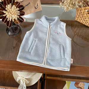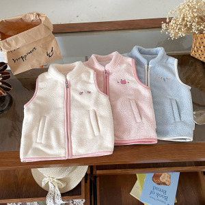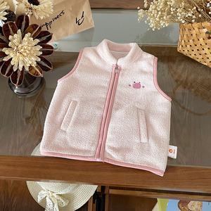 儿童马甲2025秋冬新款立领撞色拉链卡通动物绒绒保暖马甲QY259720