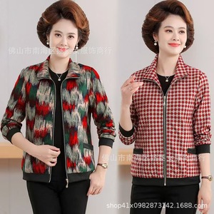 新款老年人秋冬装女奶奶针织外套中老年妈妈秋季翻领老太太衣服