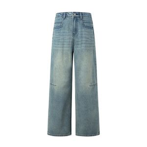 美式复古水洗 高腰直筒牛仔裤立体裁剪高街宽松休闲长裤阔