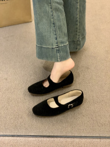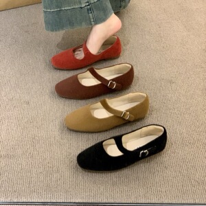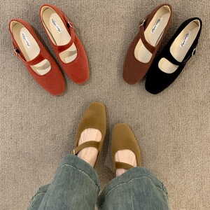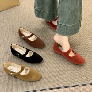 法式复古红色玛丽珍鞋女2025新款秋季气质方头芭蕾舞平底浅口单鞋
