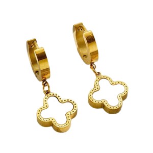 不锈钢幸运四叶草耳环耳圈耳扣简约时尚保色持久工厂饰品批发
