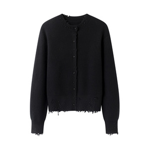 现货2025秋新品简约风钉珠刺绣针织开衫上衣5P9313100