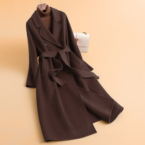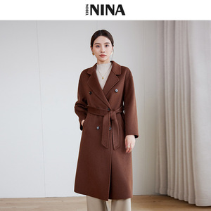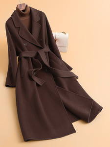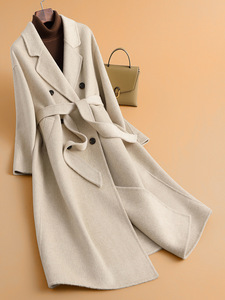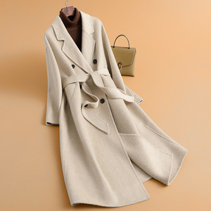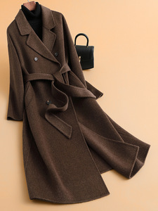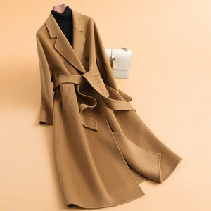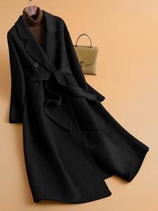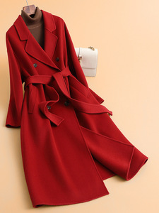 2025秋冬新款女士双面呢大衣西装领系带双排扣高级感羊毛大衣毛呢