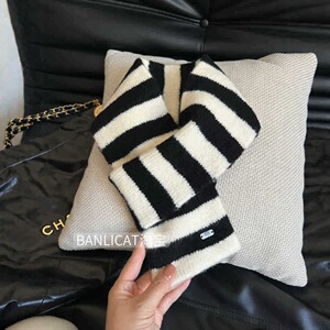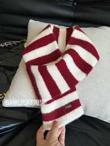 2025羊毛混纺显白条纹红色圣诞新年针织围巾女冬保暖围脖情侣