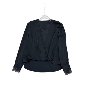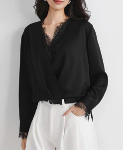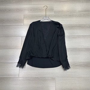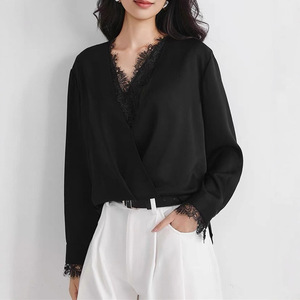 2025秋季新款篙端醋酸拼接蕾丝法式V领设计衬衫长袖优雅气质衬衣