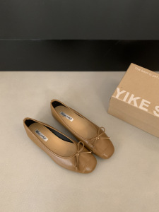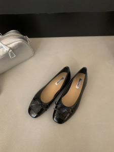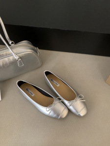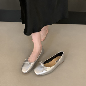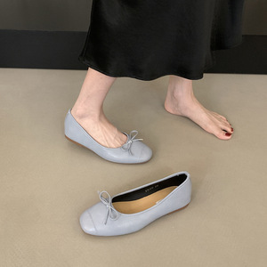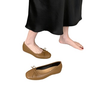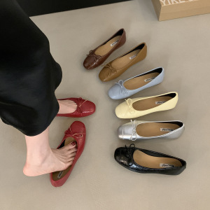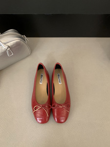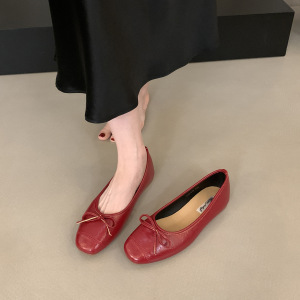 小香风平底圆头蝴蝶结芭蕾舞鞋女2025新款软底浅口一脚蹬红色单鞋