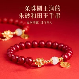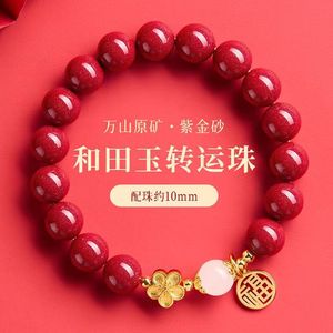 天然原矿朱砂桃你喜欢手链高含量本命年紫金帝王红砂手串工厂直销