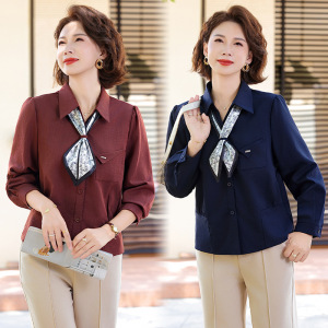 中老年女装春秋时尚休闲衬衣2025新款妈妈秋装长袖衬衫小香风上衣