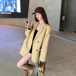 RHGD实拍秋装廓型韩版休闲宽松西装毛呢外套女
