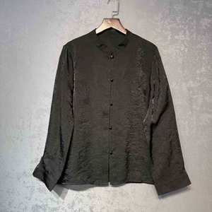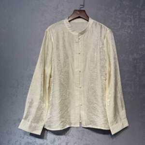 新中式国风2025年秋季新款真丝浮光锦花萝提花圆领衬衫长袖上衣女