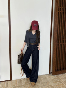 DUOXINIU/多喜牛/DaLin秋季女窄版阔腿裤宽松显腿长复古百搭显瘦