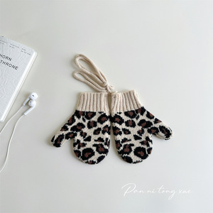 豹纹两件套~儿童秋冬季保暖针织围巾帽子套装宝宝包指挂脖手套