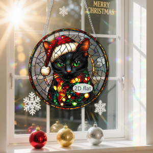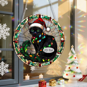 圣诞逞罗猫晚会蜡烛亚克力彩膜炫彩阳光捕手窗饰挂牌家居装饰氛围
