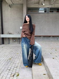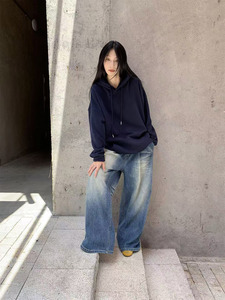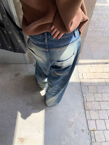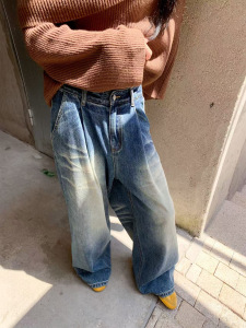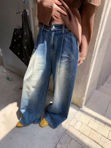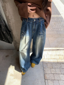 [9hour]个性褶皱设计感抓纹牛仔裤女 2025秋季工装阔腿裤女30588