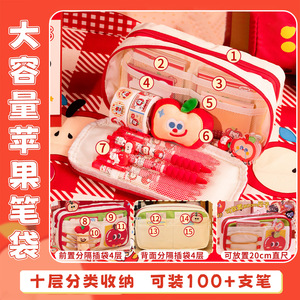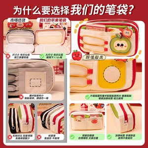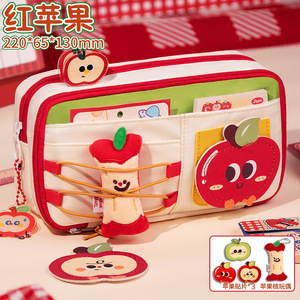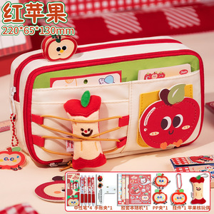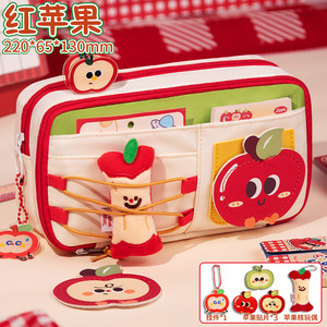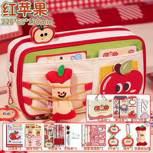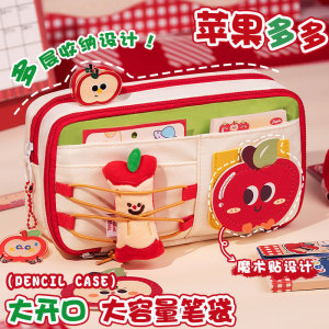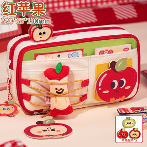 萌趣苹果笔袋可爱大容量学生铅笔袋开学必备学习用品ins风文具袋