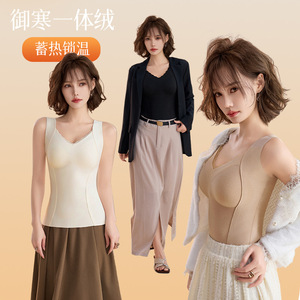 10A抗菌抗静电收腹少女加绒秋冬打底保暖内衣背心女带胸罩一体