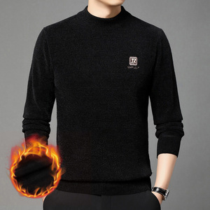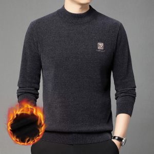 跨境冬季新款加厚刺绣长袖针织毛衣男士圆领商务休闲打底针织衫