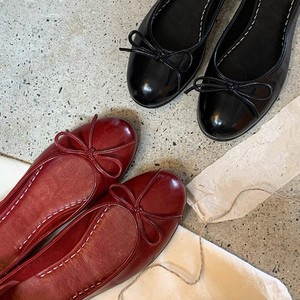 超软马皮~法式真皮复古蝴蝶结单鞋女秋新款平底浅口芭蕾玛丽珍鞋