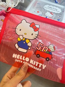 50周年kt猫网纱包身份证化妆品杂物收纳包可爱卡通红色零钱包小包