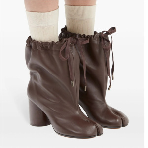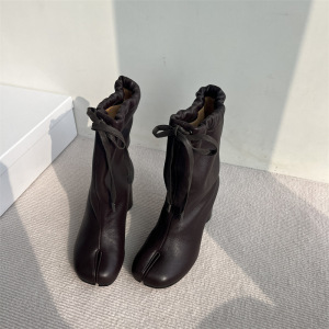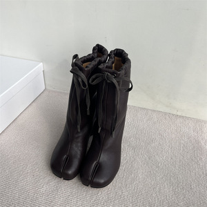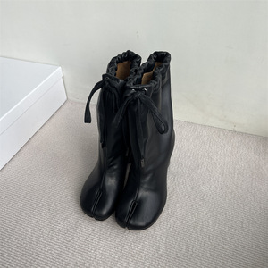 2024现款欧美抽绳马蹄靴堆堆靴宽筒系带分趾靴猪蹄靴时装马丁靴女