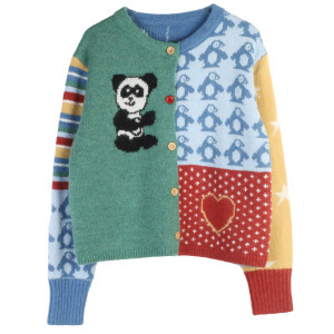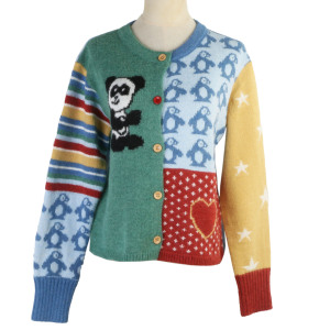 韩国圆领长袖针织开衫卡通动物刺绣单排扣秋冬新款短款针织外套女