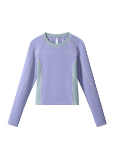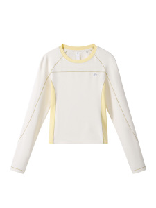 短款弹力紧身运动拼色长袖T恤 辣妹轻量化长袖上衣 户外运动T恤