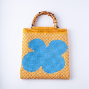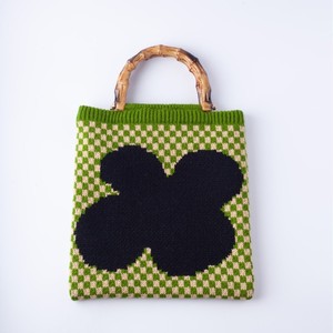 秋冬 针织包新款竹节编织毛线手提包 手腕包Ins风时尚棋盘格花朵
