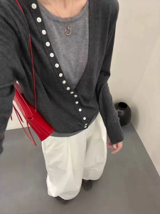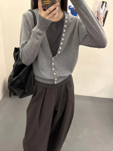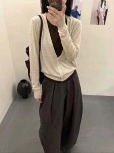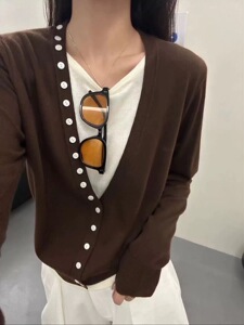 0910-160秋装V领撞色叠穿假两件上衣女秋季宽松羊毛混纺针织衫