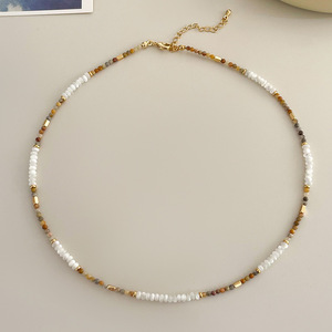 简约复古贝母算盘珠天然石圆珠串珠项链女轻奢百搭气质叠戴锁骨链