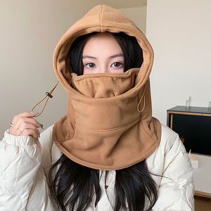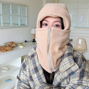 男女可戴摇粒绒保暖雷锋帽户外女骑电动车防风寒围脖面罩一体帽冬