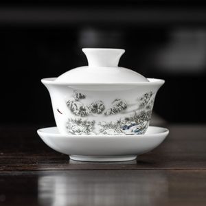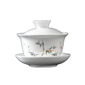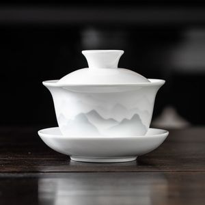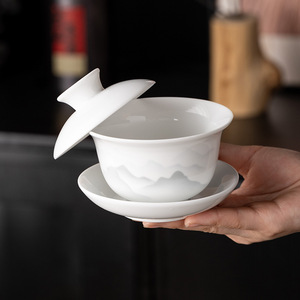 可悬停盖碗泡茶杯茶具单个白瓷茶碗带盖旋转泡茶三件套四季盖碗