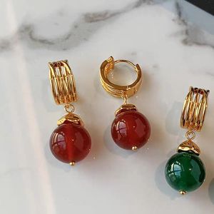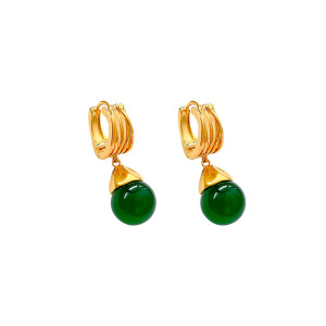 新中式天然绿色玛瑙耳环女复古轻奢高级感耳扣秋冬爆款百搭耳饰品
