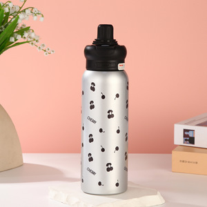 新款316不锈钢吸管杯大容量双饮便携保温杯提绳学生户外运动水杯
