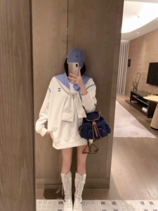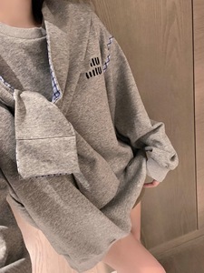 现货高品质miu家早秋新款圆领卫衣+拼接格子披肩百搭时尚上衣宽松
