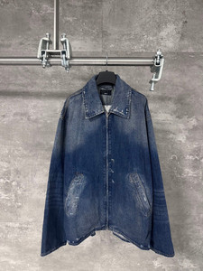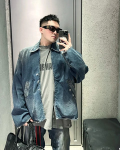 巴黎B家新款洗水磨烂渐变丹宁牛仔夹克世家高街宽松百搭潮流外套