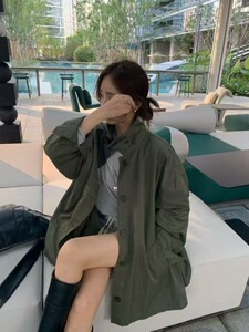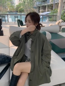 秋季新款宽松军绿夹克风衣外套落肩oversize版型复古感上衣146